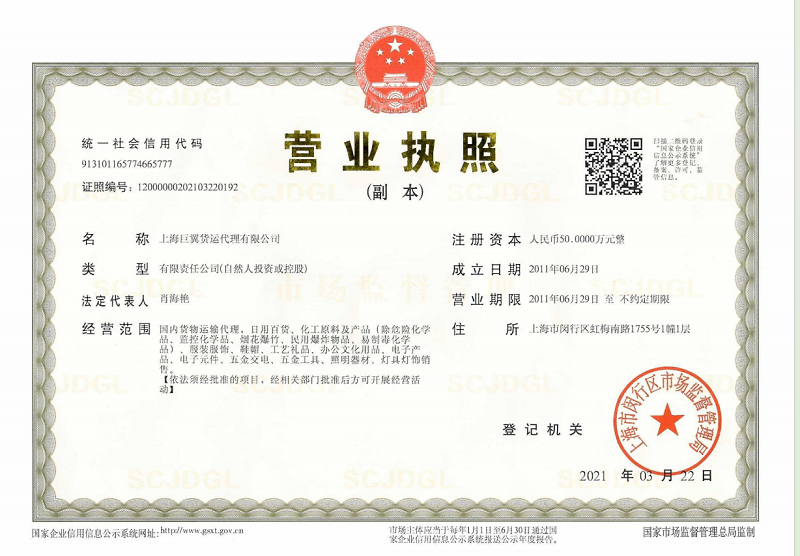 上海巨翼貨運(yùn)代理有限公司